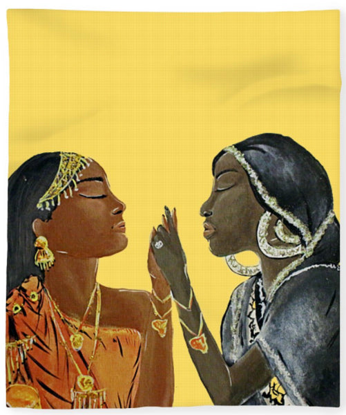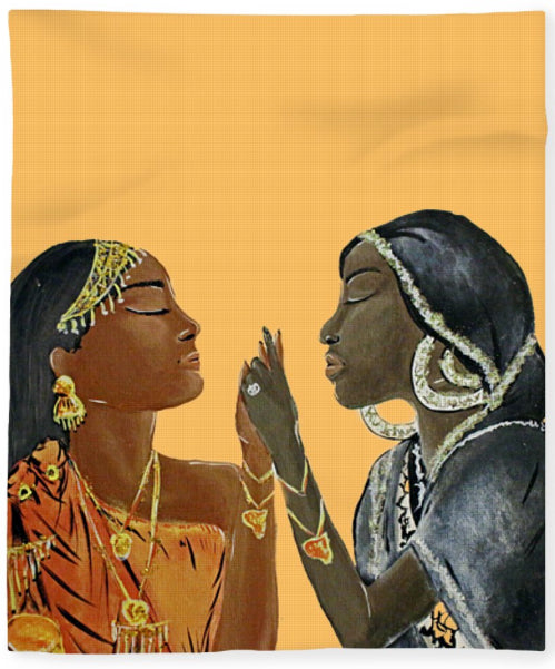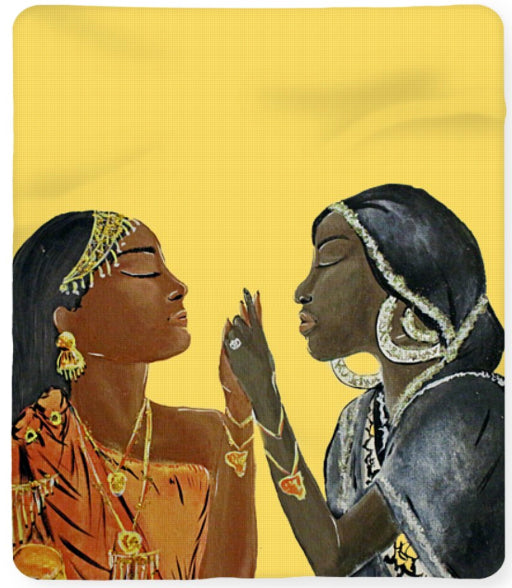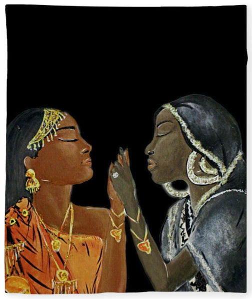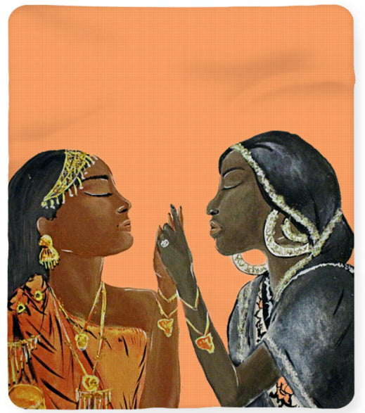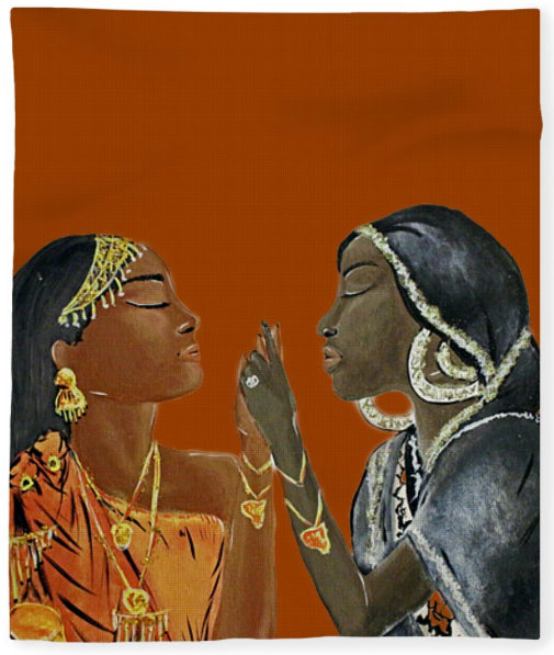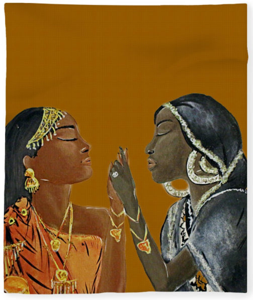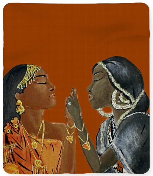 Pimento Creations' luxuriously soft Shades of Melanin fleece blanket is available in two different sizes. The bottom surface is white, but the front side is available in an assortment of colors. Pimento Creations' 100% polyester blankets are available in two different styles: plush fleece and sherpa fleece. Plush fleece blankets are soft and fluffy on both sides, whereas sherpa blankets are smooth like a soft sweater on the artwork side (i.e. shorter threads).